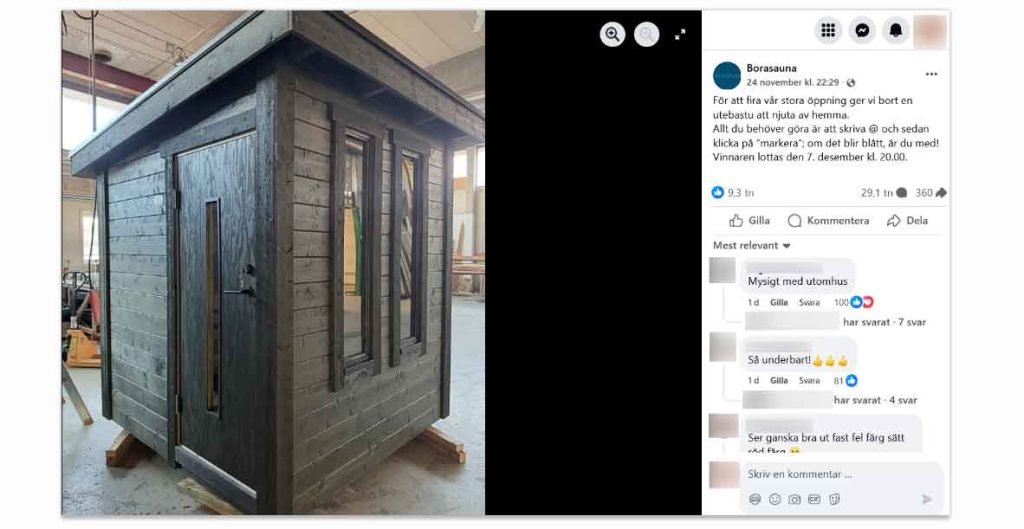 Här kan du även läsa igenom recensionerna av sidan – och för Borasaunas del så rör det sig om många negativa kommentarer. En kvinna skrev så här i dag: “Lurendrejeri. De säger att de lottar ut en bastu, men skickar meddelande om en husbil”.