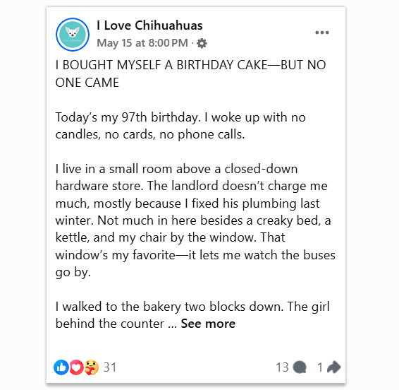 Facebook översvämmas med AI-genererade bilder och snyfthistorier. Målet? Klickfiske.