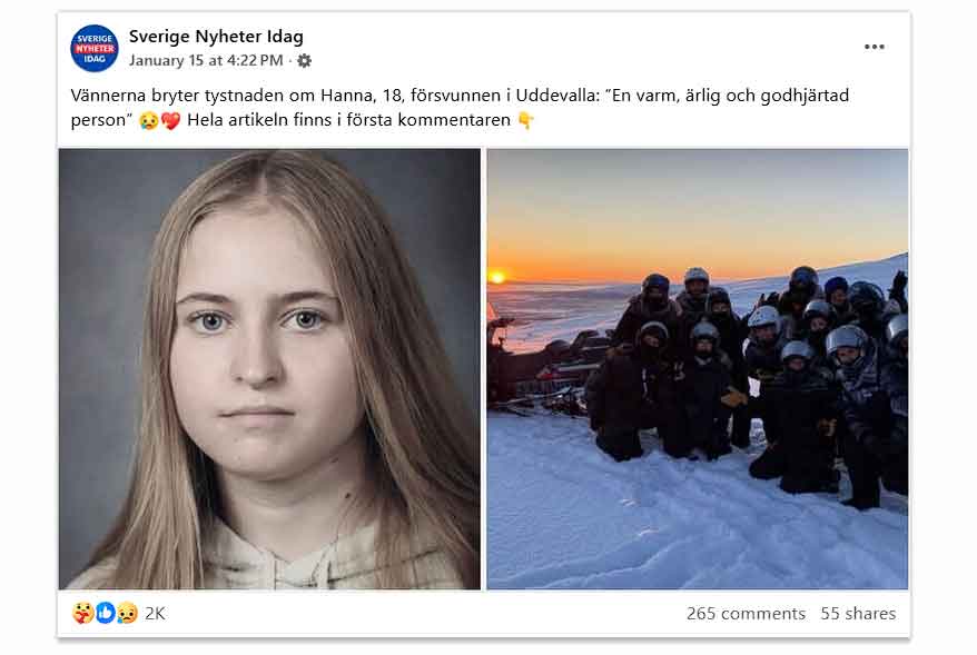 Klickbetessida bakom falska uppgifter om 18-åriga Hannas försvinnande