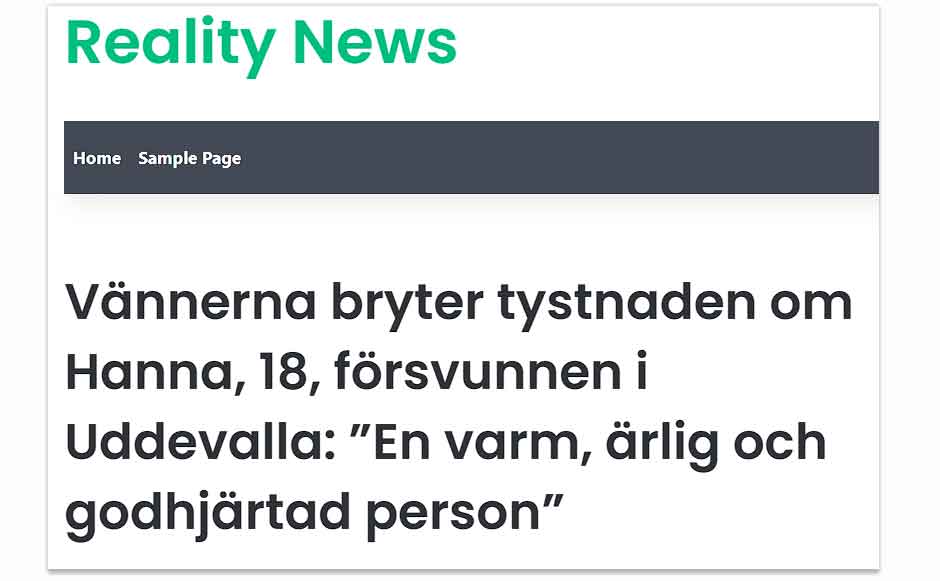 I torsdags påstod de tre sidorna att Hannas anhöriga uttalat sig – i kommentarsfältet länkade de till den annonsfyllda “nyhetssajten” RealityNews68. Där möts läsaren av en artikel som bär flera tecken på AI-genererad text med citat från anonyma personer som påstås känna Hanna, men som ingen etablerad nyhetskälla tycks ha talat med.